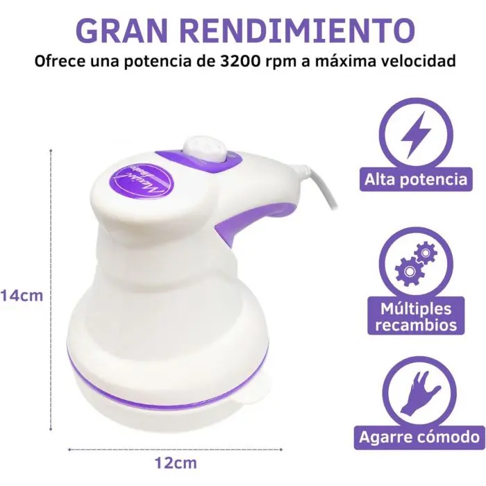 GRAN POTENCIA: El cabezal de rotación ofrece una velocidad de giro de 3200 vueltas por minuto, proporcionando una mayor eficacia durante el masaje y estimulando intensamente las células grasas resistentes.