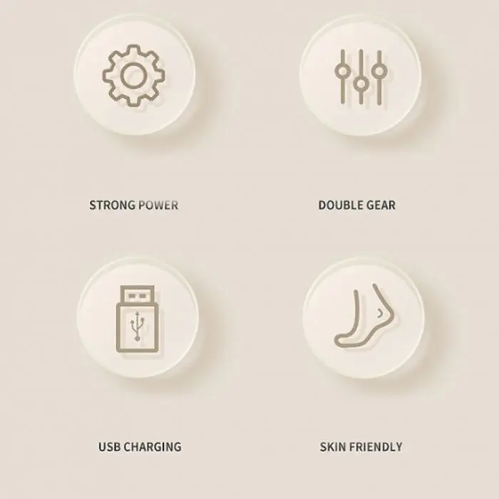 El paquete incluye: caja de embalaje, removedor de callos, 3 cabezales, cable USB, manual de instrucciones.